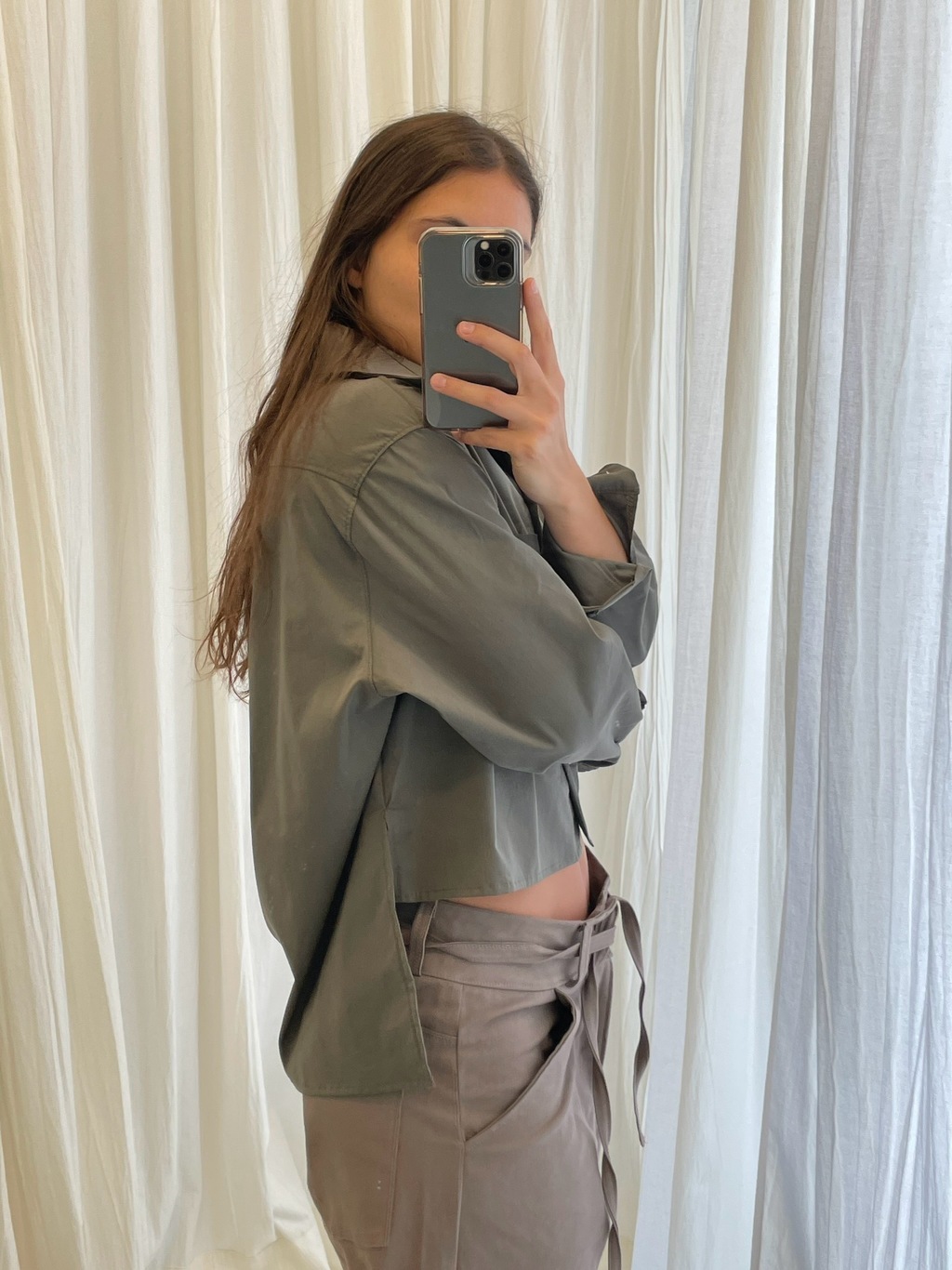 Camisa de poplin de algodón elastizado, oversize talle único.