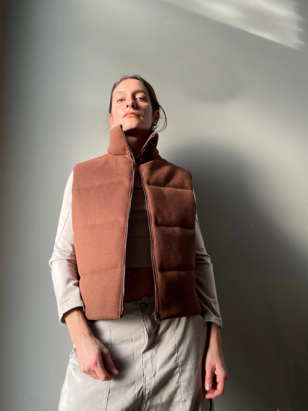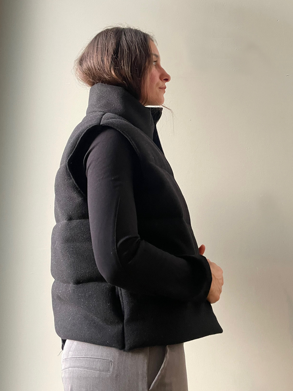 Chaleco de paño doble, matelaseaso relleno de guata.